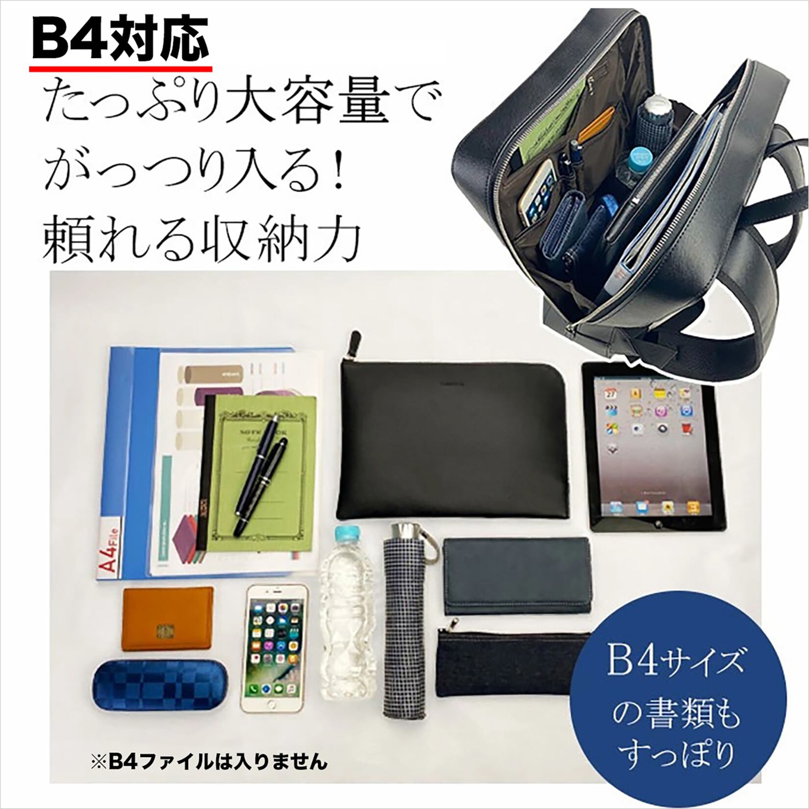 ・軽量&大容量設計:見た目以上の収納力と軽さを両立。通勤・出張・通学・旅行など幅広いシーンで活躍