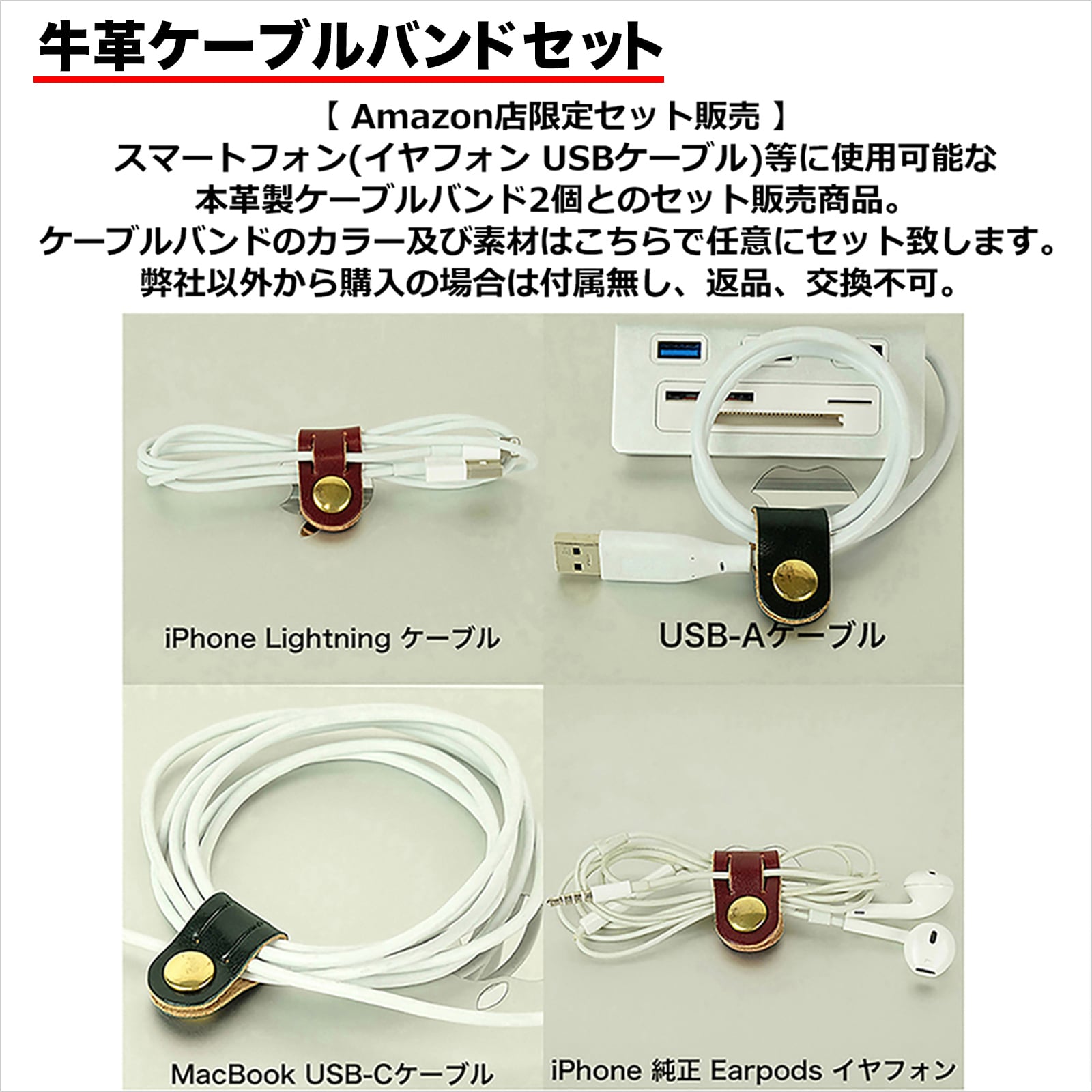 ◤【 本革製ケーブルバンド 2個セット 】