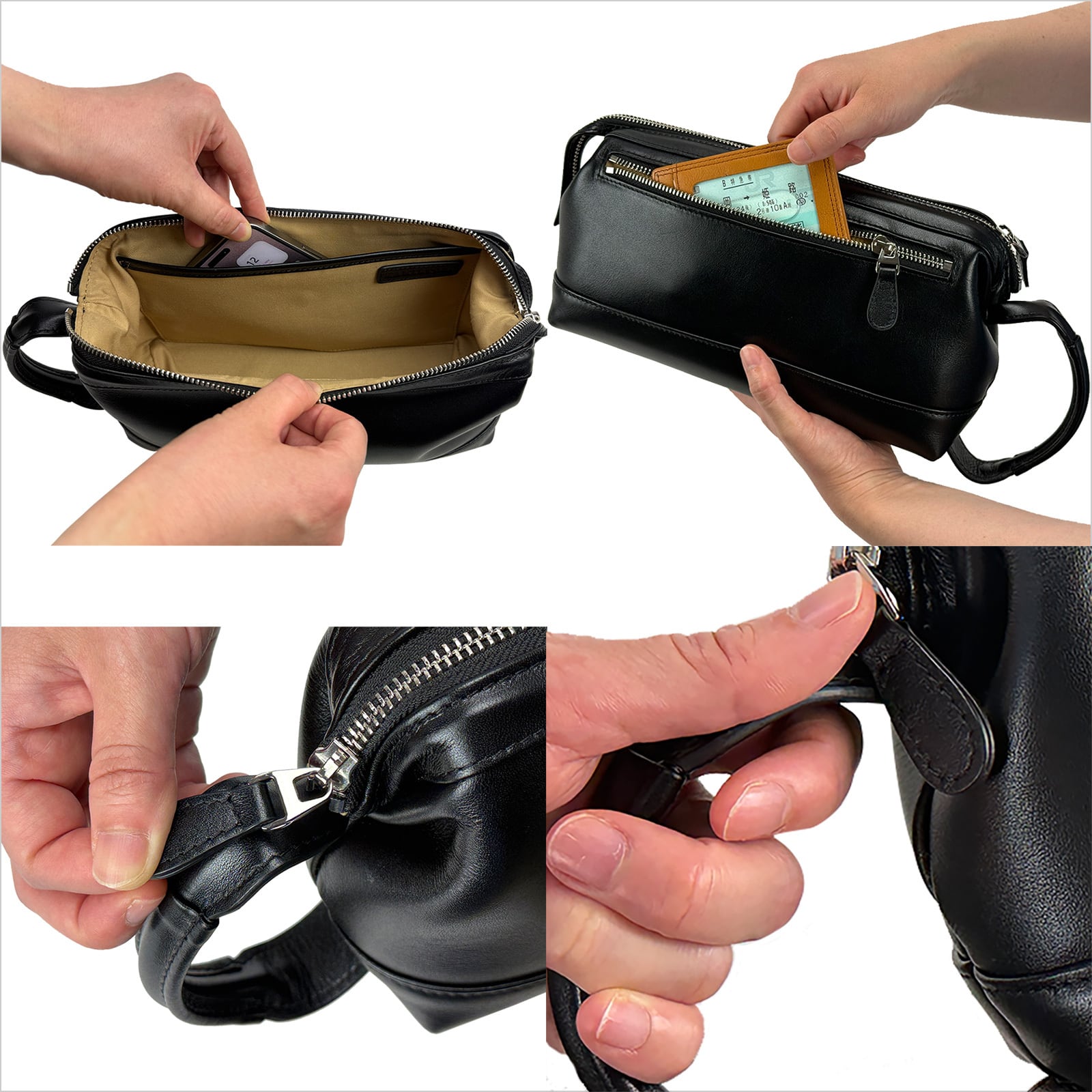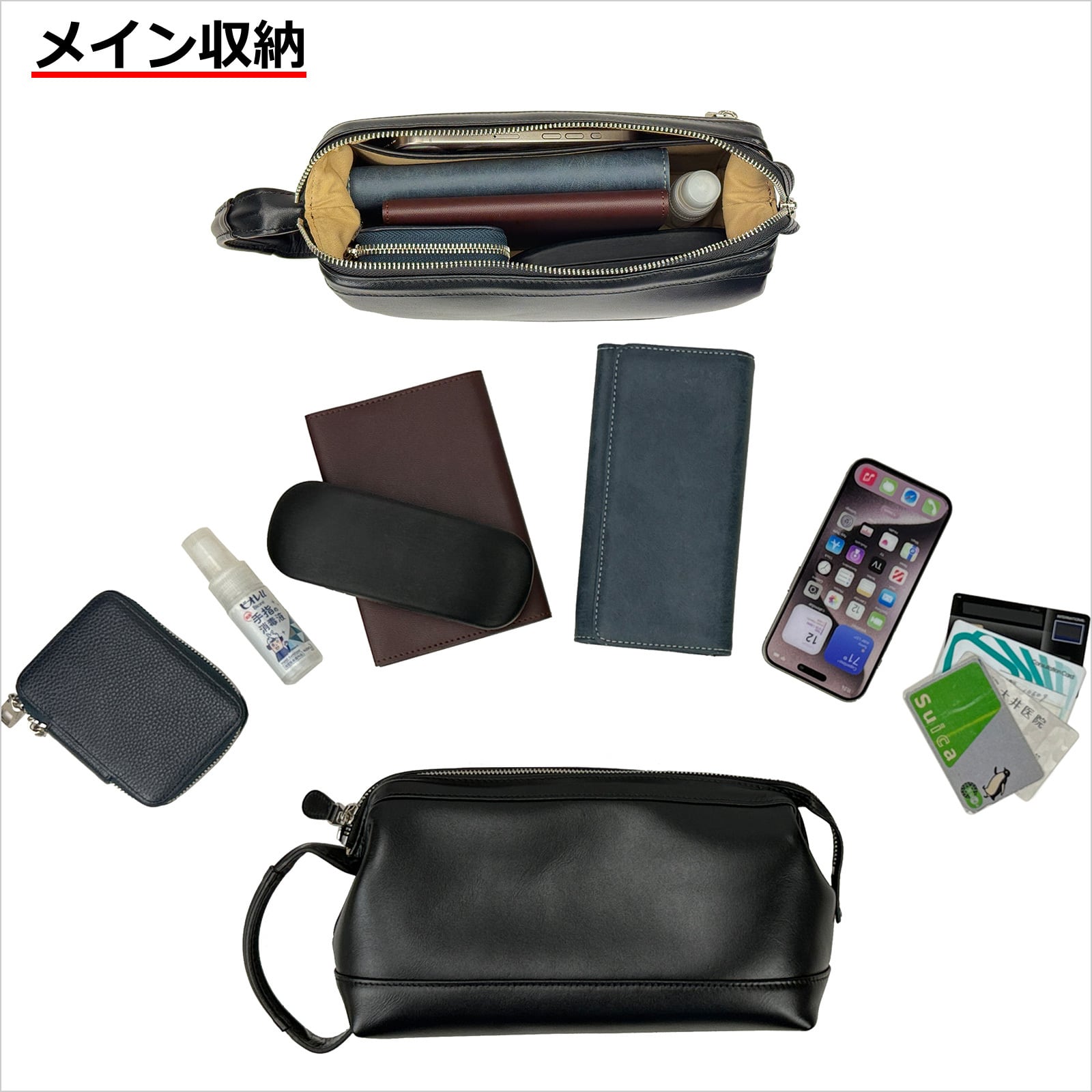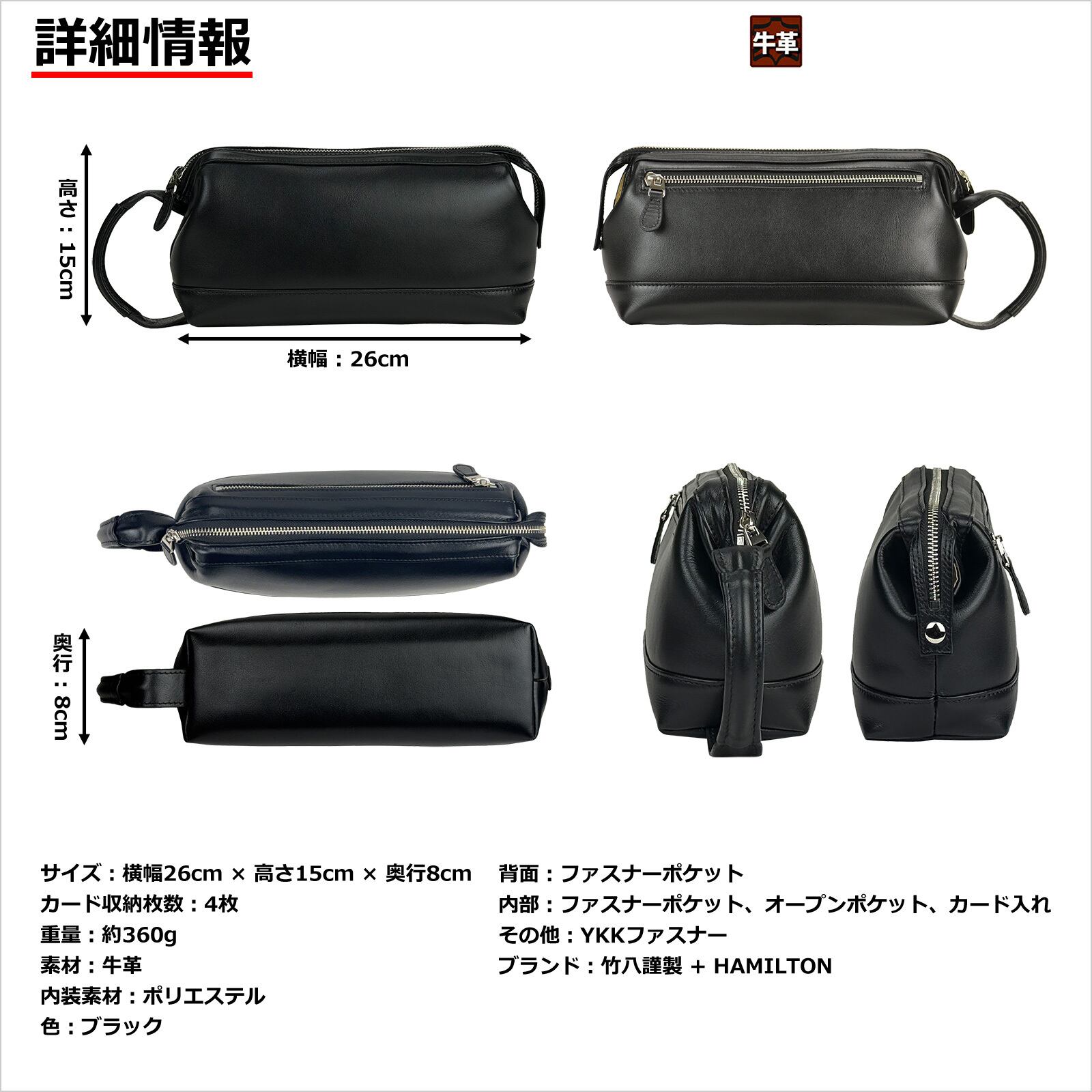 竹八謹製 (タケハチ) 牛革 クラッチバッグ 通勤 旅行 360g + ケーブルバンド2個 セット tm0720